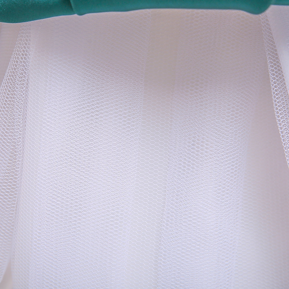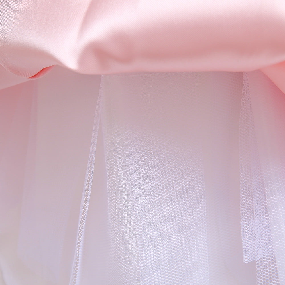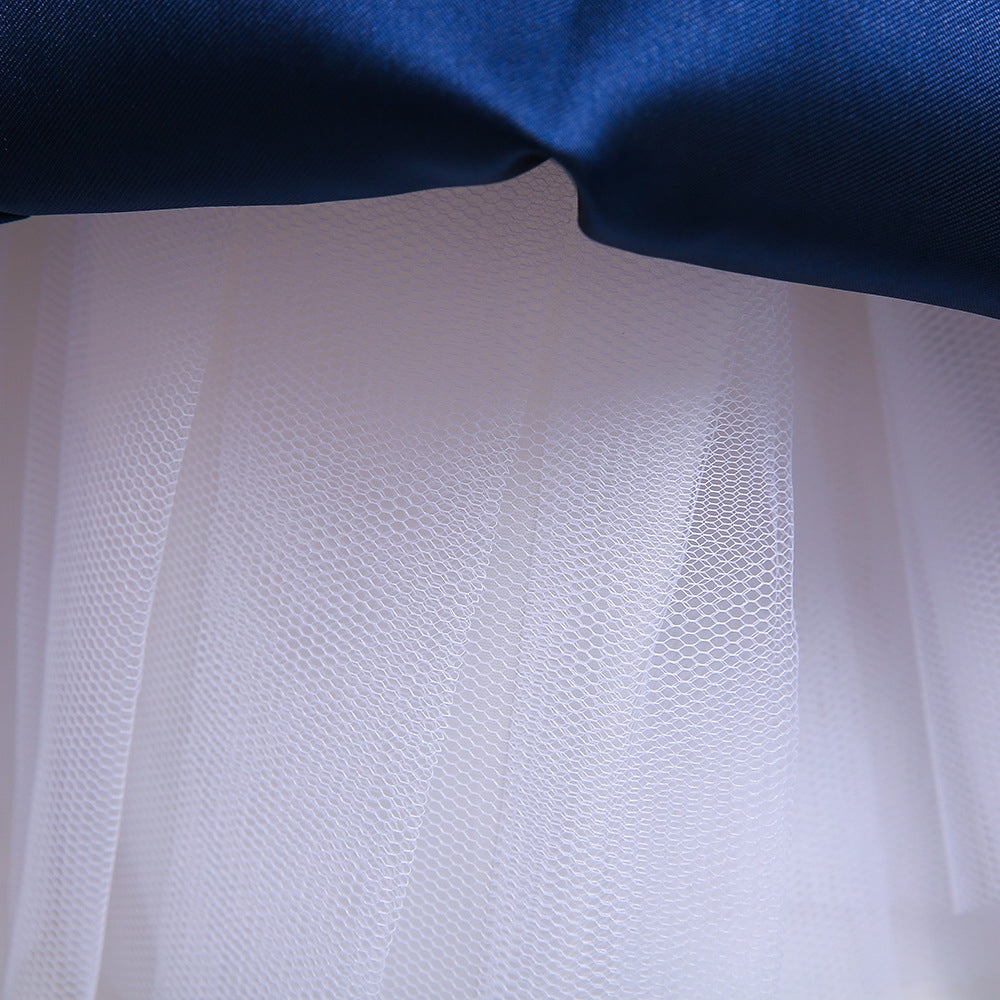 ・120サイズ:身長110cmの方が着用するとスカートの前丈はちょうどいいですが後ろ丈は長くなります。身長126cmの方が着用すると前丈は短くなり、後ろ丈はちょうどよくなります。(パニエなしで着用した場合)